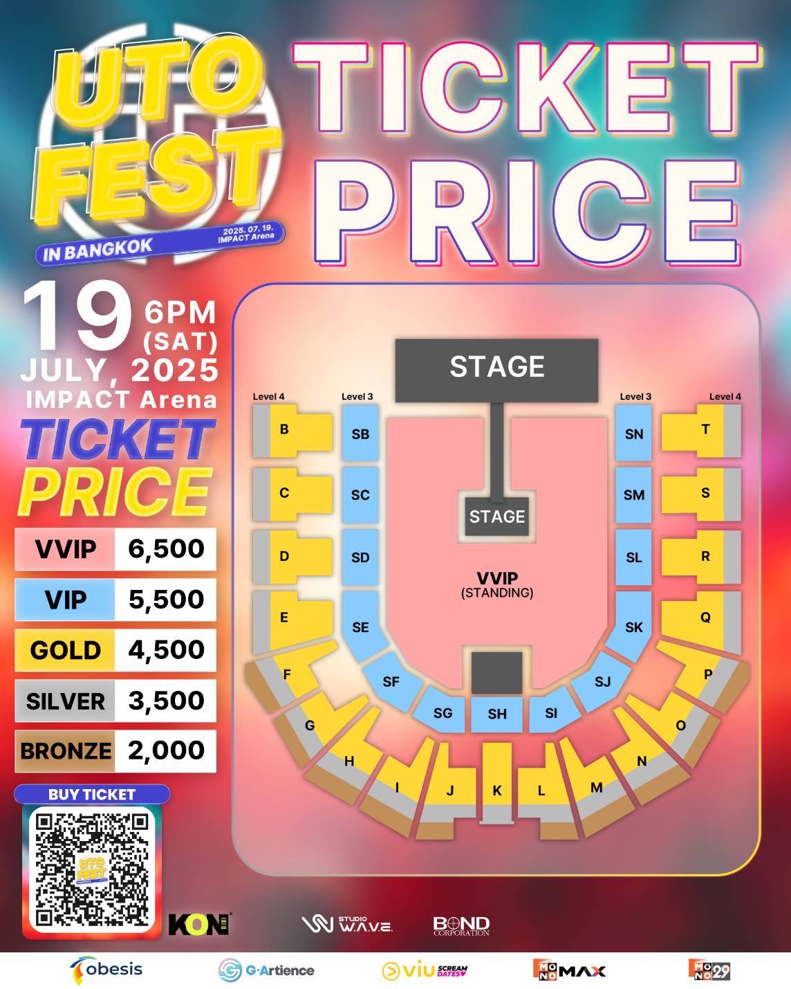 กลับมาอีกครั้งกับความสนุก ความมันส์แบบจัดเต็มของปรากฏการณ์​คอนเสิร์ต​ที่ไม่ควรพลาดกับไลน์​อัพศิลปินสุดฮอต SUHO (EXO), KEY (SHINee), 2NE1 และศิลปินเซอร์ไพร์สสุดฮอต ที่จะมาเขย่าเวที พร้อมระเบิดความมันส์​ในงาน 2025 UTO FEST IN BANGKOK! (2025 ยูโต เฟส อิน แบงค็อก)​ วันเสาร์ที่ 19 กรกฎาคม 2568 ณ IMPACT Arena (อิมแพค อารีน่า)​ บัตรราคา (VVIP)​ 6500, (VIP) 5500, (GOLD) 4500, (SILVER) 3500 และ (BRONZE)​ 2000 บาท พร้อมรับ Special Fan Benefit มากมาย อาทิ Artist Sign Poster, Uto fest Light Stick, Official Poster, Round Hand Fan