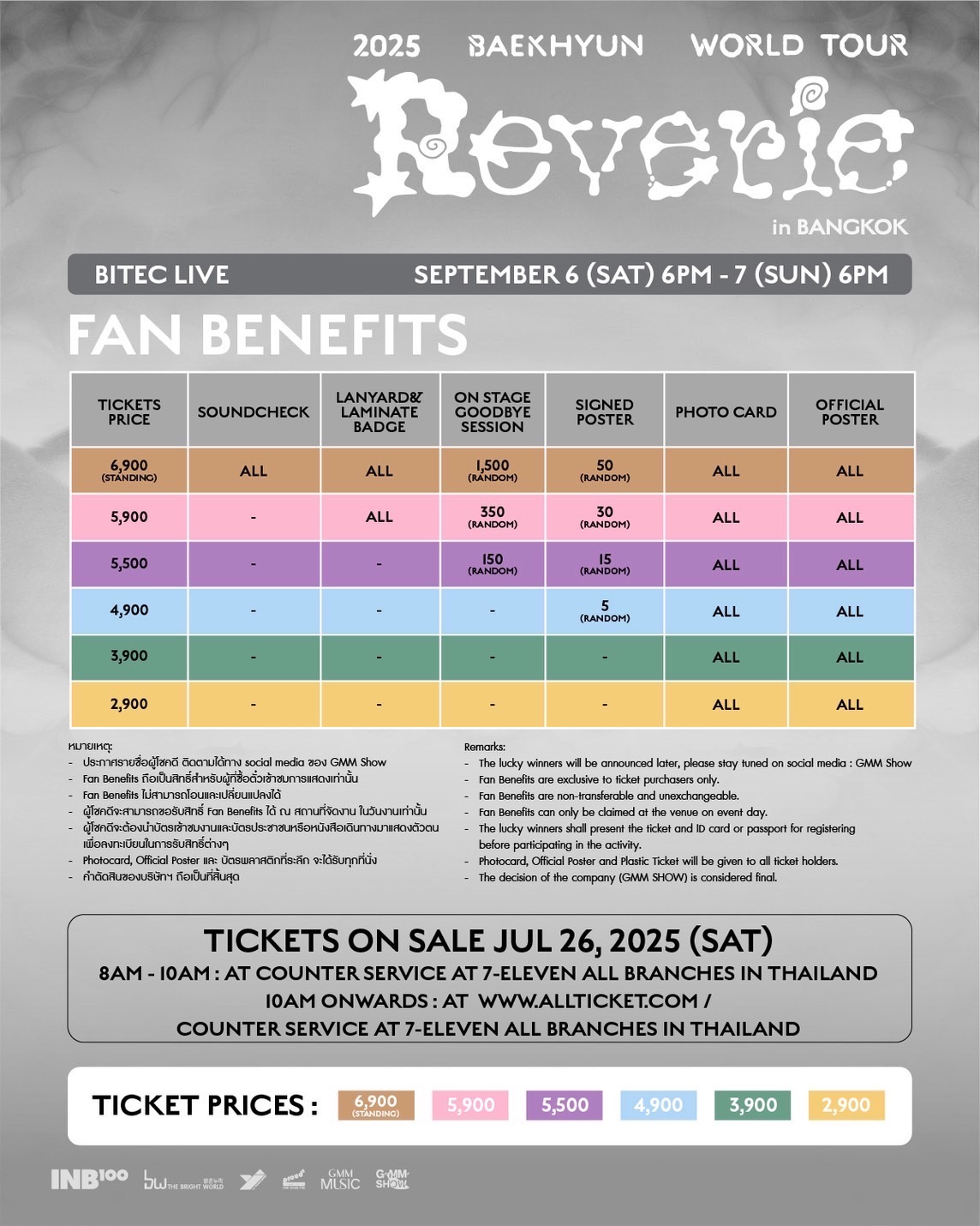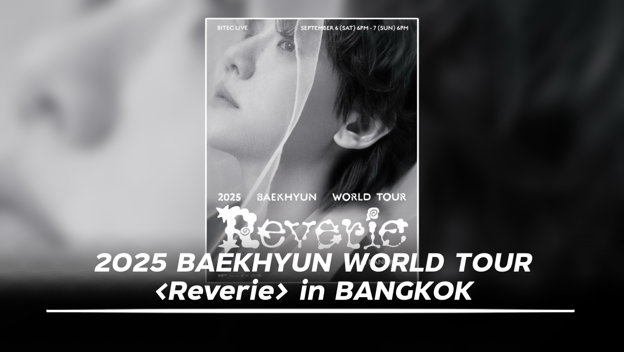 พยอน แบคฮยอน (Byun Baekhyun) หรือแบคฮยอน หนึ่งในสมาชิกวง “EXO” ผู้เดบิวต์อย่างเป็นทางการในฐานะศิลปินเดี่ยวกับมินิอัลบั้มชุดแรกที่มีชื่อว่า “City Lights” ซึ่งได้รับความนิยมและกระแสตอบรับอย่างล้นหลาม โดยหลังจากสร้างปรากฏการณ์กับคอนเสิร์ตเดี่ยวครั้งแรกและบัตร Sold Out อย่างรวดเร็วเมื่อปีที่ผ่านมา ครั้งนี้ “แบคฮยอน” ได้กลับมาให้เอลี่ชาวไทยได้หายคิดถึงอีกครั้งพร้อม WORLD TOUR ครั้งแรก ในงาน “2025 BAEKHYUN WORLD TOUR <Reverie> in BANGKOK” ซึ่งจะจัดขึ้นในวันที่ 6 – 7 กันยายน 2568 เวลา 18.00 น. ณ BITEC LIVE