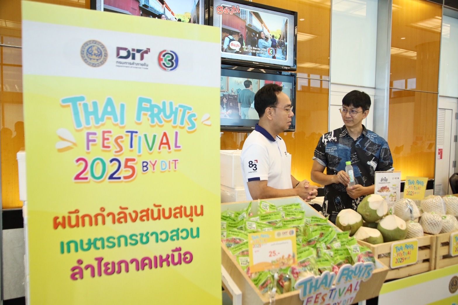 DIT กรมการค้าภายใน ผนึกกำลังสนับสนุนเกษตรกรชาวสวนลำไยภาคเหนือ และชาวสวนมะพร้าวน้ำหอม จังหวัดราชบุรี นำมาจำหน่าย ณ สถานีโทรทัศน์ช่อง 3 ระหว่างวันที่ 19 – 20 สิงหาคม 2568 และประชาสัมพันธ์ให้พี่น้องประชาชนได้ร่วมอุดหนุนผลไม้จากเกษตรกรไทยเพื่อช่วยลดปัญหาผลไม้ล้นตลาด โดยการอุดหนุนลำไยสดช่อ เกรด AA+A มาจำหน่ายในราคา บรรจุตะกร้าละ 3 กิโลกรัม ราคาเพียง 110 บาท ในส่วนของมะพร้าว ได้นำมะพร้าวน้ำหอมจากจังหวัดราชบุรี มาจำหน่ายราคาลูกละ 15 บาท มะพร้าวพร้อมทาน ลูกละ 25 บาท และน้ำมะพร้าวบรรจุขวด ขวดละ 25 บาท ณ อาคารมาลีนนท์ ชั้น G เพื่อช่วยเหลือเกษตรกรผู้ปลูกลำไยภาคเหนือ และชาวสวนมะพร้าวน้ำหอม ให้มีรายได้ เพิ่มโอกาสขาย และเป็นกำลังใจที่ดีต่อเกษตรกรต่อไป