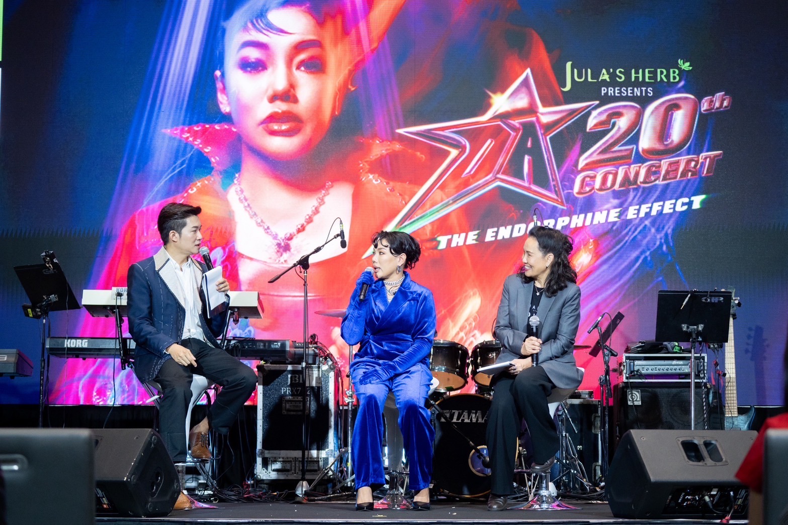 โดยบรรยากาศภายในงานแถลงข่าวอบอวลไปด้วย “สารความสุข” แบบจัดเต็มตั้งแต่วินาทีแรก เริ่มต้นด้วยโมเมนต์เปิดงานที่ “ดา เอ็นโดรฟิน” โชว์พลังเสียงอุ่นๆปลุกอารมณ์ในเพลง “ได้ยินไหม” ให้กองทัพสื่อมวลชนกดชัตเตอร์เก็บภาพกันรัวๆ ก่อนจะเข้าสู่ช่วงพูดคุยอย่างเป็นกันเอง โดย “อั๋น ภูวนาท” รับหน้าที่พิธีกรเชิญตัวมัมคัมแบ็คขึ้นบนเวที ก่อนจะเชิญเจ้าแม่คอนเสิร์ต “พี่ฉอด สายทิพย์ มนตรีกุล ณ อยุธยา” หัวเรือใหญ่ CHANGEshowbiz ที่ห่างหายจากการจัดคอนเสิร์ตไปถึง 2 ปี แต่ยังขึ้นชื่อยืนหนึ่งเรื่องรายละเอียดและความประณีตในการทำคอนเสิร์ต ทั้งการออกแบบลำดับเพลง (sequence) การร้อยเรียงอารมณ์ของโชว์ และโปรดักชันจัดเต็มในทุกมิติ ฉาก–เวที–แสง–สี–เสียง เพื่อนำ DNA ในการจัดงานคอนเสิร์ตครั้งนี้มาประกบกับนักร้องหญิง ICONIC ของเมืองไทย “ดา เอ็นโดรฟิน” แต่โจทย์ที่ยากคือศิลปินคนนี้ มีเพลงฮิตมากมายจนทีมงานต้องทำงานอย่างหนักเพื่อคัดสรรเพลงฮิตหลากหลายมาเรียงร้อยคัดสรรส่งเป็นสารแห่งความสุขให้ถึงแฟนๆ ทุกคนในฮอลล์ให้ได้
