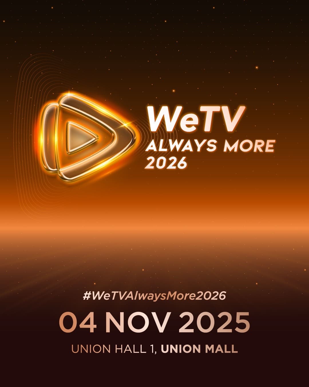 เตรียมเสียงกรี๊ดไว้ให้พร้อม! เพราะ WeTV ประกาศจัดงานยิ่งใหญ่ส่งท้ายปี “WeTV Always More 2026” งานเปิดไลน์อัพคอนเทนต์แห่งปี ที่จะจัดขึ้นในวันที่ 4 พฤศจิกายน 2568 ณ Union Hall 1, Union Mall งานนี้ขนทัพศิลปินและนักแสดงสุดฮอตมากกว่า 50 ชีวิตมาให้แฟนๆ ได้ฟินจุใจ!