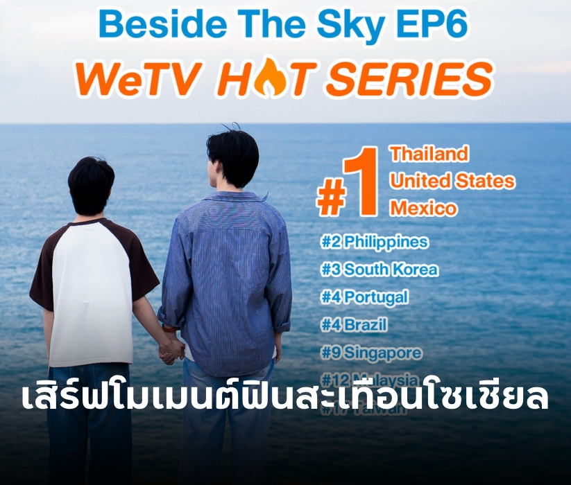อีกหนึ่งผลงานกระแสแรง ฮอตตั้งแต่ต้นปี สำหรับซีรีส์วายโรแมนติก–คอมเมดี้ “Fourever You Part 2 : Beside The Sky ต้นฟ้าไต้ฝุ่น” ที่ยิ่งออน ยิ่งเสิร์ฟความฟินแฟน ๆ ไปทั่วไทม์ไลน์ เพราะด้วยเรื่องราวน่าติดตาม ดูเพลิน จนทำให้ซีรีส์ขึ้นแท่นอันดับ 1 WeTV HOT TV Series บน WeTV ในหลายประเทศ ทั้ง Thailand, United States และ Mexico ตอกย้ำกระแสฮิตแบบไวรัลข้ามประเทศ ขณะเดียวกันแฮชแท็ก #FoureverYou2EP6 ก็พุ่งแรงติดเทรนด์ X อันดับ 1 Thailand และอันดับ 2 Philippines กลายเป็นโมเมนต์ที่แฟน ๆ แชร์กันอย่างต่อเนื่อง