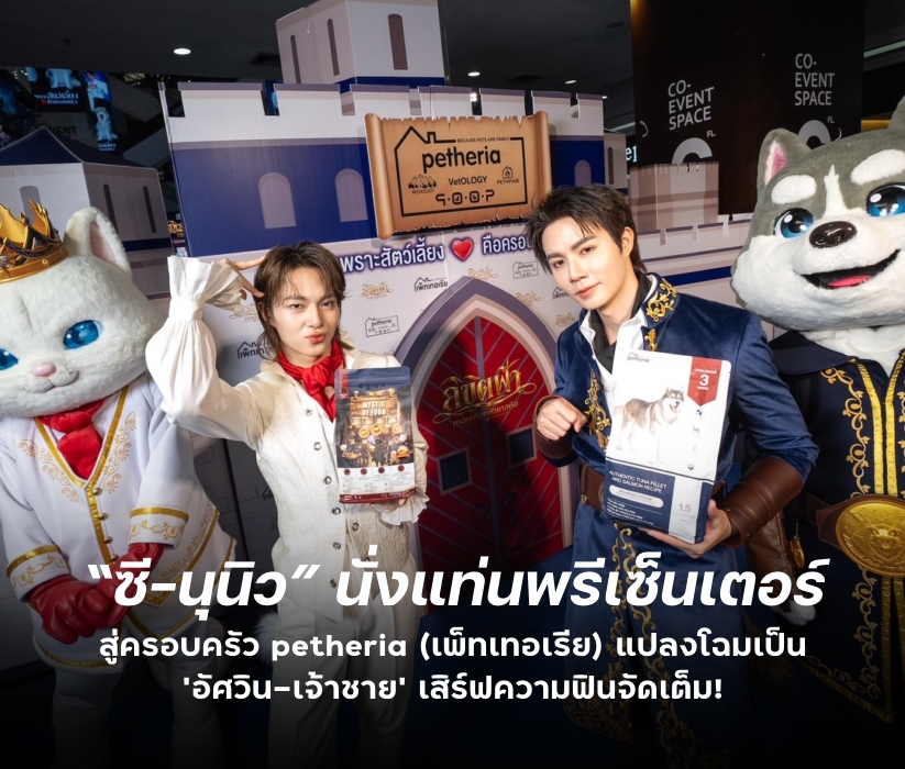 petheria (เพ็ทเทอเรีย) แบรนด์อาหารสัตว์เลี้ยงพรีเมียมยุคใหม่ที่ขับเคลื่อนด้วยความรัก ภายใต้แนวคิดหลัก “เพราะสัตว์เลี้ยงคือครอบครัว” เซอร์ไพรส์แฟนด้อมสุด ๆ เมื่อสองหนุ่มสุดฮอต “ซี–พฤกษ์ พานิช” แปลงโฉมเป็น “อัศวิน     โทไบอัส” และ “นุนิว–ชวรินทร์ เพริศพิริยะวงศ์” ในบทบาท “เจ้าชายเบลิออน” แท็กทีม “น้องซน” มาเสิร์ฟโมเมนต์สุดฟินแบบใกล้ชิดในงาน “petheria THE DESTINY FAMILY WITH ZeeNuNew” เปิดตัวพรีเซ็นเตอร์คนใหม่เข้าสู่ครอบครัว petheria (เพ็ทเทอเรีย) ที่ให้ความสำคัญกับสายใยความผูกพันระหว่างเจ้าของและสัตว์เลี้ยง ภายในงานเต็มอิ่มกับกิจกรรมแฟนมีตสุดเอ็กซ์คลูซีฟ และมินิคอนเสิร์ตเรียกเสียงกรี๊ดแบบไม่พักเมื่อวันก่อน ณ Union Mall ชั้น G | Union Co-Event Space ส่งแฮทแทค #petheriaXZeeNuNew พุ่งติดเทรนด์