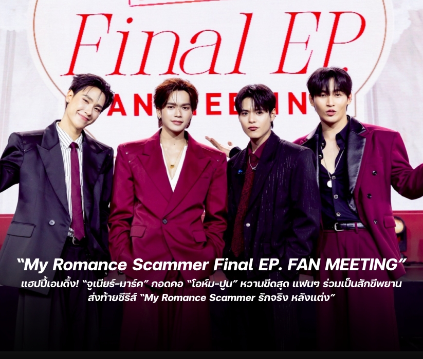 หลอกไปหลอกมาก็หลงรักจนหัวปักหัวปำ สำหรับซีรีส์โรแมนติกคอมเมดี้ อารมณ์ดีรักกันทั้งเรื่อง “My Romance Scammer รักจริง หลังแต่ง” เข้าหาเพื่อหลอกล่อ อยู่ต่อเพราะรักแล้ว จาก “GMMTV” คอนเทนต์โพรไวเดอร์ชั้นนำของเมืองไทย กับฝีมือการแสดงของคู่ฮอตเคมีสุดปัง “จูเนียร์ ปณชัย ศรีอาริยะรุ่งเรือง” และ “มาร์ค จิรันธนิน ตรัยรัตนยนต์” กอดคอ 2 หนุ่มคู่ใหม่มาแรง “โอห์ม ฐิติวัฒน์ ฤทธิ์ประเสริฐ” และ “ปูน มิตรภักดี” ที่กระแสตอบรับดีมาก โดนใจแฟนๆ จนทำให้ EP11 พุ่งทะยานขึ้นเทรนด์ X “อันดับ 1” ในไทย และอีกหลายพื้นที่ทั่วโลก ล่าสุดงาน “My Romance Scammer Final EP. FAN MEETING” ก็พิสูจน์ให้เห็นถึงความฮอตเกินต้าน ทำให้บัตร SOLD OUT ทุกที่นั่ง งานนี้ 4 หนุ่มชวนแฟนๆ ร่วมเป็นสักขีพยานความรัก รับชมตอนสุดท้าย “My Romance Scammer รักจริง หลังแต่ง” ด้วยกัน พร้อมด้วยผู้กำกับฯ คนเก่ง “นิว ศิวัจน์ สวัสดิ์มณีกุล” มาร่วมพูดคุยถึงเบื้องหน้าเบื้องหลังการทำงาน และพิเศษสุดๆ กับสเปเชียลโชว์สุดเอ็กซ์คลูซีฟจากเหล่านักแสดง พร้อมโมเมนต์อินเลิฟเสิร์ฟให้แฟนๆ ได้ฟิน เมื่อวันอาทิตย์ที่ 19 เมษายน 2569 เวลา 19.30 น. ที่ MCC HALL ชั้น 3 เดอะมอลล์ไลฟ์สโตร์ บางแค